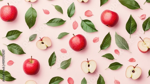 apple, red apple, apple, fruit, red, pink, background, seamless, pattern, texture, leaf, green leaf, leaf, healthy, food, fresh, nature, organic, design, wallpaper, vibrant, colourful, delicious, juicy, sweet, botanical, plant, spring, summer, autumn, fall, template, graphic, image, photo