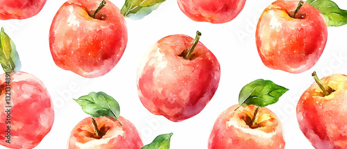 Red apples watercolor pattern. Food background