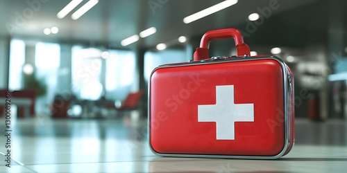 Red First Aid Kit on Display in Modern Environment with Professional Touch and Focus on Health Safety