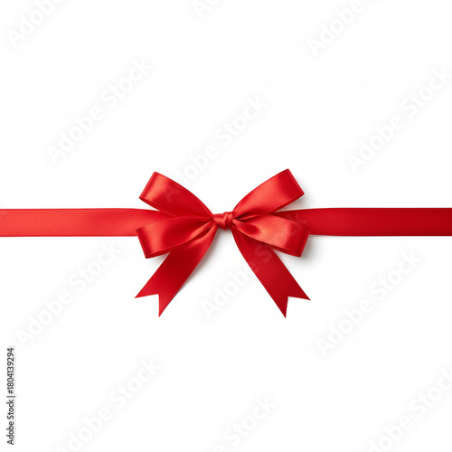 red ribbon bow. Red gift ribbon with a bow tied in the center horizontal layout Isolated on white background.