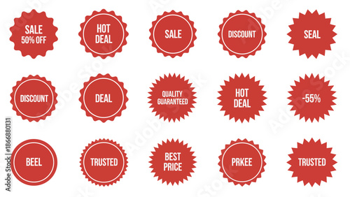 Red Starburst Sale Badges Set Deal Discount Hot Deal Best Seller Trusted Vector Illustration
