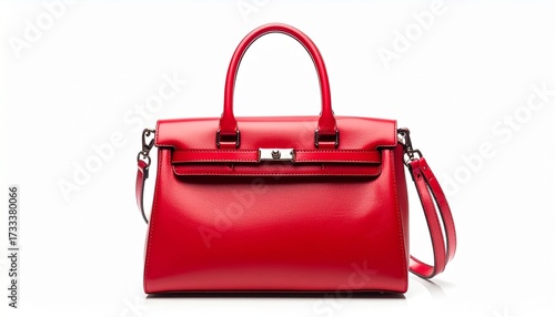 pursed, red, glossy, structured, flap, closure, metallic, clasp, detachable, fashion, accessory, elegant, chic, stylish, feminine, modern, trendy, purse, tote, satchel, upscale, refined, formal, vibrant, bold, smooth, clean, polished, high-end, statement, timeless, luxury, sleek, classic, high-coloured, bright, sophisticated
