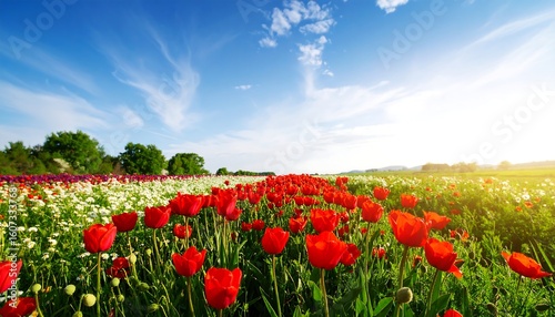 tulip, flower, red, spring, nature, beauty, garden, landscape, field, blooming, vibrant, colourful, summer, scenery, idylli, picturesque, meadow, travel, vacation, holiday, springtime, outdoors, scenic