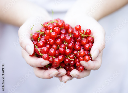 Redcurrant in woman arm.Macro image.