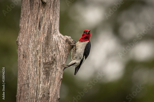 Red-headed Woodpecker searches for grubs