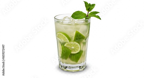 Refreshing Mojito Cocktail with Lime Slices, Ice, and Mint Garnish