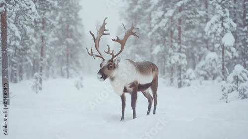 reindeer, snowy, forest, winter, wilderness, nature, wildlife, antler, pine, tree, snow, animal, landscape, cold, serene, mammal, ecosystem, peaceful, natural, habitat, arctic, fauna, herbivore, northern, climate, covered, tranquil, rustic, seasonal, beautiful, scene, grazing, county, exploration, deep, beauty, observation, behaviour