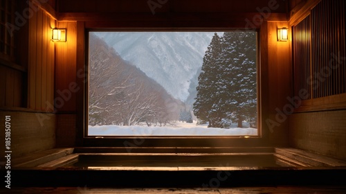 Relaxing hot spring experience in snowy mountains scenic view nature photography tranquil atmosphere
