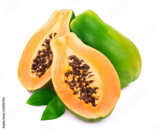 Ripe papaya on white