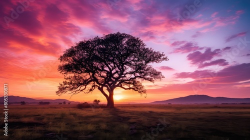 rise, tree, field, sun, illustration, horizon, sky, purple, silhouette, ray, halo, branch, image, calmness, new, nature, awaken, day, landscape, beauty, peaceful, serene, dawn, light, glow