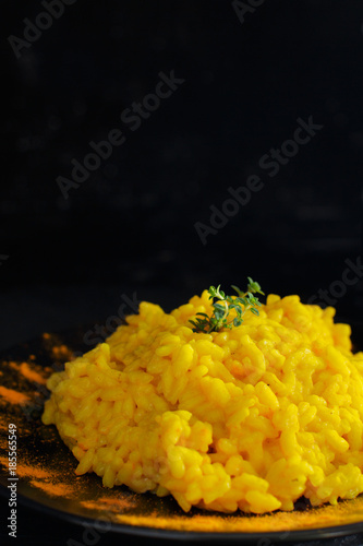 closeup, cooked, cookery, curry, delicious, diet, dinner, food, gastronomy, epicure, healthy, indian, italian, lunch, meal, prepared, rice, risotto, saffron, spice, traditional, turmeric, vegetable, vegetarian, white, yellow, grey, health, nourishment, bowl, frame, copy space, black, dark