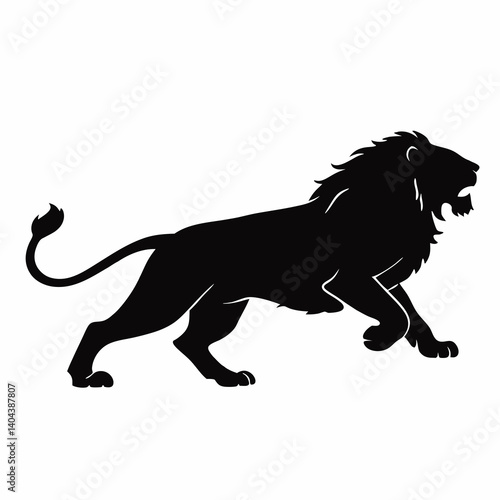 Roaring Lion Silhouette Vector Illustration Showing Power And Majesty On White Background