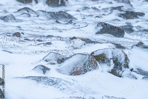Rock Ptarmigan (Lagopus muta) in Cairn Gorm in Scottish Highlands in the winter, UK