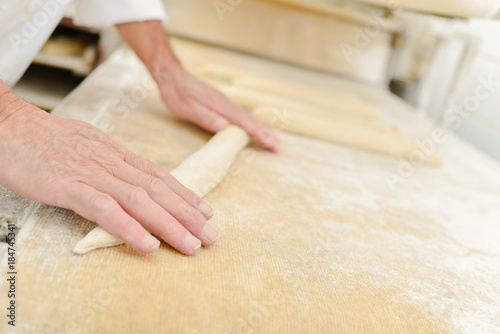 Rolling dough for baguettes