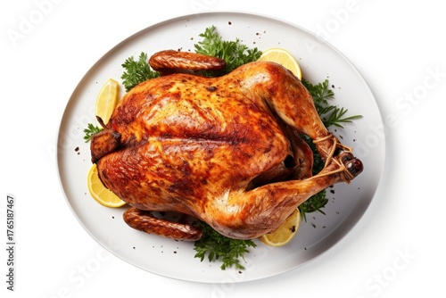 plate, bird, food, meat, roast, white background, background, chicken, dinner, fruit, lemon, fish, table, herb, vegetable, thanksgiving, still life, white, meal, view, photograph, rosemary, cut-out, seafood, turkey, dish, top, freshness, closeup, rotisserie, isolated, pork meat, whole, dinner, epicure, fried food, white meat, main course, studio shot, citrus fruit