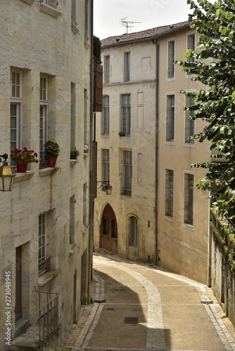Ruelle entre les vieux murs en pierres et historiques au centre ville médiévale de Périgueux en Dordogne