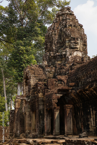 Ruins of Bayon Temple in Angkor wat in Siem Reap, Cambodia