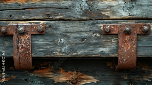 rust-eaten, metal, bracket, weathered, wood, plank, grain, texture, surface, aged, distressed, old, rustic, antique, vintage, iron, steel, brown, grey, dark, macro, detail, pattern, background, design, element, decor, industrial, construction, hardware, fastener, bolt, screw, nut, joint, support, holding, fixing