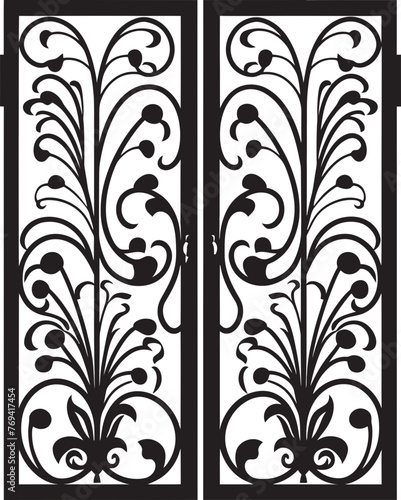 Rustic Garden Charm Wrought Iron Bi Fold Door, Black Logo Design Icon Artisanal Beauty Wrought Iron Bi Fold Garden Door, Black Vector Logo