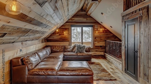 rustic, cabin, loft, wood, leather, sofa, reclaimed, interior, design, home, decor, mountain, cosy, comfortable, relaxing, warm, inviting, elegant, stylish, modern, room, furniture, lighting, window, view, ceiling, wall, floor, texture, brown, natural, atmosphere, house, living, space, area, style, aesthetic, comfort, luxury