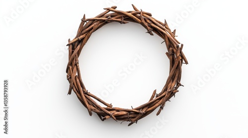Rustic Wooden Crown of Thorns Wreath Isolated on White Background