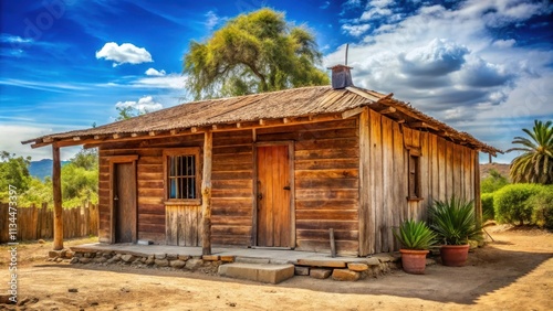 Rustic wooden house in a small Mexican village , Mexico, traditional, rural, quaint, adobe, architecture