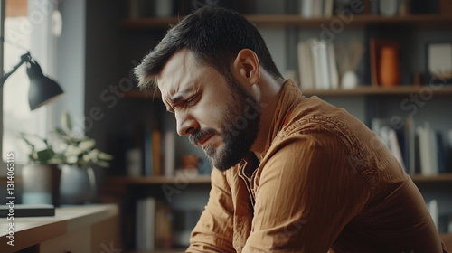 Sad man crying indoors feeling depression sorrow emotional pain grief tears upset alone human somber
