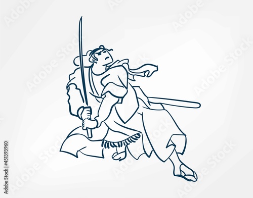 samurai traditional vector line art sketch japanese design isolated