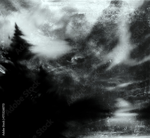 Scary horror dramatic wallpaper, forest background, gloomy landscape