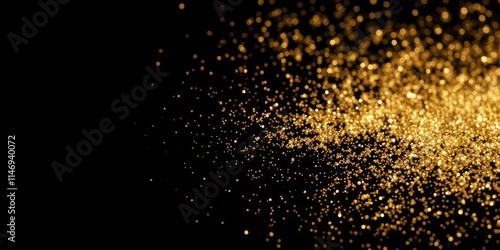 Scattered gold glitter particles shimmer on a dark background, creating a luxurious texture, abstract, metallic