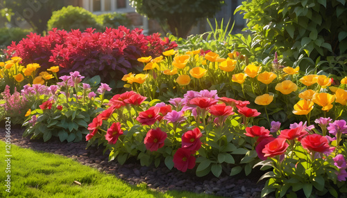 garden, flower, landscape, bloom, nature, vibrant, colourful, greenery, spring, beauty, flora, natural, park, flower garden, floral, plant, garden design, garden path, season, scenic, lush, gardening, peaceful, bright, green, sunlight, botany, environment, floral arrangement, fresh, calmness, scene, flourishing, natural beauty