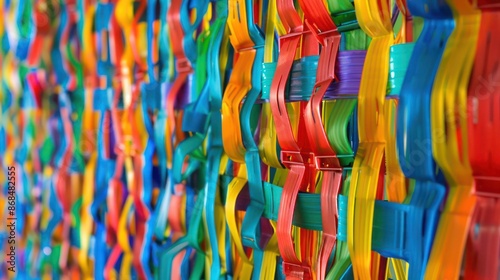screen, wall, made, from, woven, strip, of, many-coloured, recycled, plastic, creating, vibrant, environmentally friendly, privacy, barrier, abstract, architecture, background, concept, design, home, house, illustration, image, landscape, retro, street, town, air, apartment, banner, beautiful, bright, building, business, classic, colourful, decoration, door, european, exterior, facades