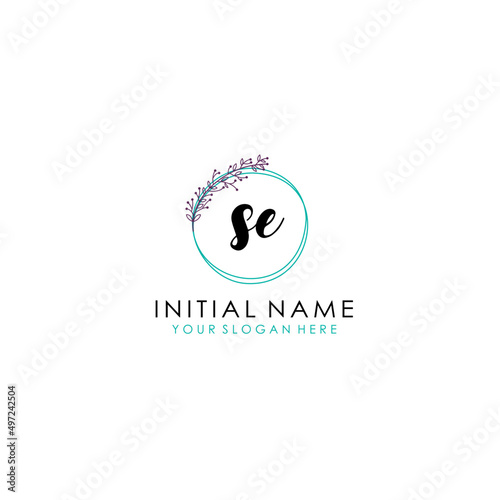 SE Initial letter handwriting and signature logo. Beauty vector initial logo .Fashion boutique floral and botanical