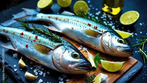 fish, salmon, seafood, fresh, meat, dish, raw, food, salt, slate, seabass, board, grill, whole, vegetable, background, view, top, wooden, table, eatery, black, sea, uncooked, oil, marin, mediterranean, rosemary, fillet, lunch, lemon, diet, garlic, delicious, meal, healthy, space, red, spice, olive, dinner, ingredient, protein, dieting, herb, chopping board, greener, copy