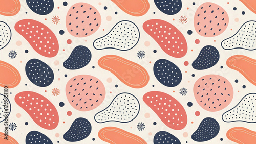 Seamless abstract minimal pattern with organic blob shapes irregular rounded spots scattered across background