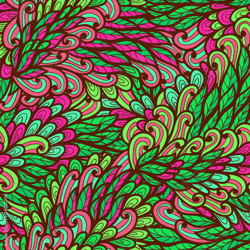 Seamless floral pink and green bright summer doodle pattern
