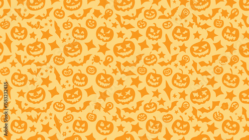halloween, pattern, seamless, pumpkin, bat, star, orange, background, festive, skittish, autumn, holiday, celebration, design, texture, repeating, motif, starry, decorative, surface