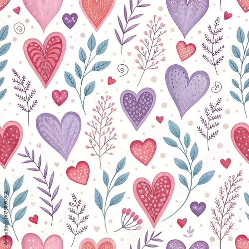 Seamless heart and floral pattern background