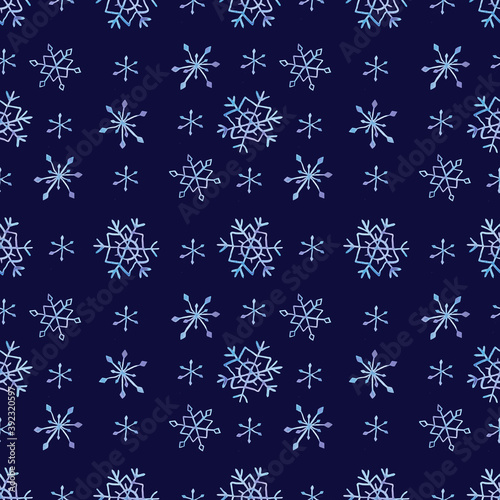 Seamless pattern with snowflakes on a darkblue background