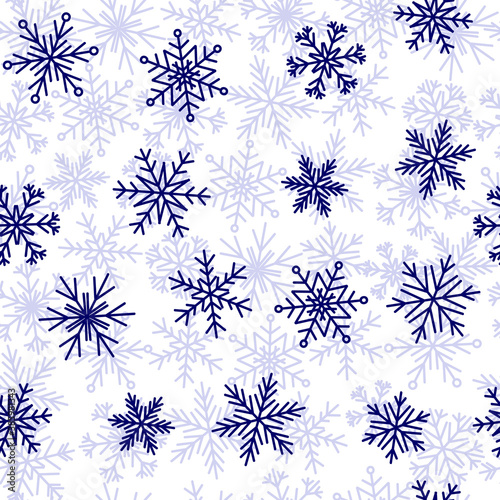 Seamless pattern with snowflakes on white - natural background for winter New Year and Christmas design
