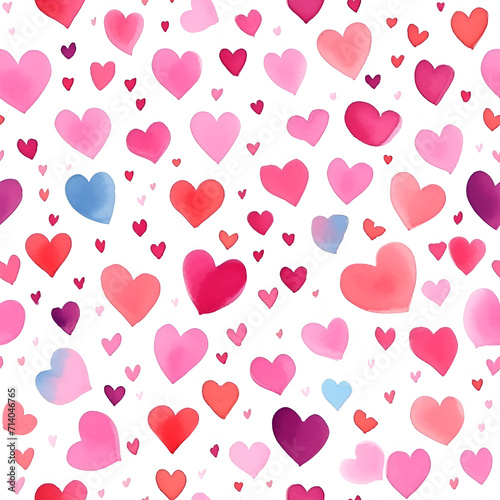 Seamless pattern with watercolor colorful hearts. Vector illustration. Hand drawn.