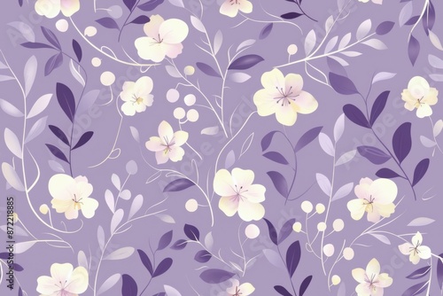 Seamless Silhouette Pattern of Cream Flowers on Lavender Background