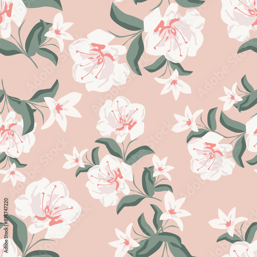 Seamless textured spring summer floral pattern background