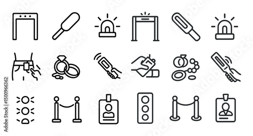 security, flat, outline, vector, icon, set, protection, monitoring, entry, guard, barrier, security equipment, iconography, line art
