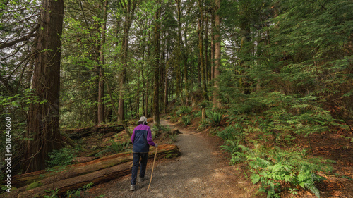 senior, woman, hiking, forest, trail, walking, tour tourism, canada, nature, tree, outdoors