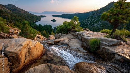 waterfall, landscape, nature, mountain, lake, rock, tree, forest, water, view, greenery, pine, scenic, tranquil, beauty, environment, travel, mountainous, creek, stone, waterfall, viewpoint, calm, mountain, fresh water, rocky, vista, colours, natural, peaceful, tour tourism, daylight