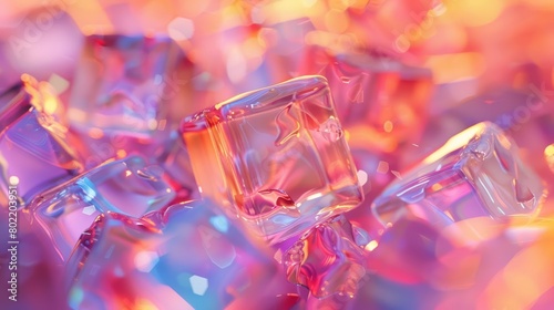 Set against a Background of holographic glass shapes, refracted light and shimmering colors create a delicate and ethereal atmosphere, Sharpen 3d rendering background