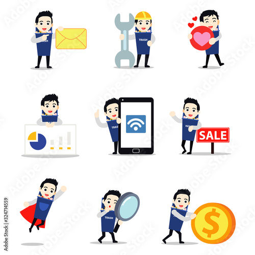 ashbin, can, trash, bucket, clean, container, dumpster, environment, garbage, junk, reusing, waste, person, male, human, people, business, businessman, man, coin, datum, gold, envelope, love, nubes, sale, sale, mobile, mobile phone, traffic, hero, superhero, wrench, hat, design, modern, cartoon, character, flat, set, icon, isolated, vector, illustration, chart, uniform, magnifier, magnifying glass