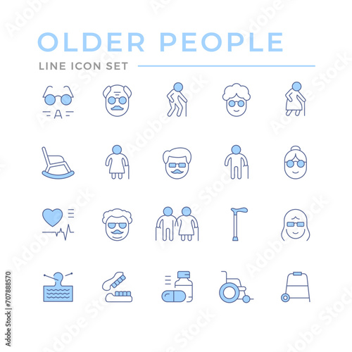 Set color line icons of older people