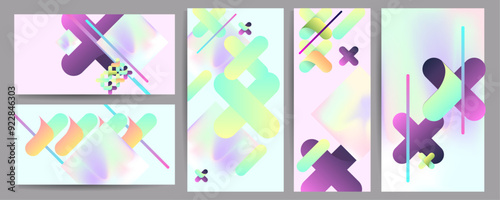 Set hologram gradient background 90s, 80s retro style. Pastel shades muted colors graphic template for brochure, banner minimal hologram gradient